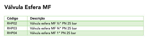 Ficha Técnica: Válvula Esfera MF