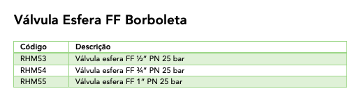 Ficha Técnica: Válvula Esfera FF Borboleta