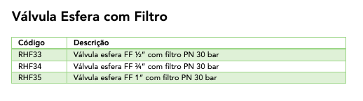 Ficha Técnica: Válvula Esfera com Filtro