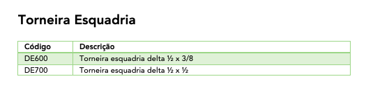 Ficha Técnica: Torneira Esquadria DE