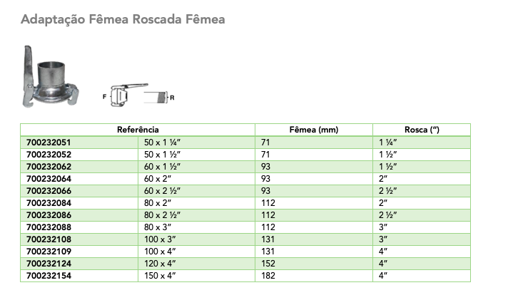 Ficha Técnica: Adaptação Fêmea Roscada Fêmea LS (Modelo Italiano)