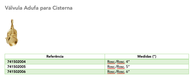 Ficha Técnica: Válvula Adufa para Cisterna - Modelo LS (Italiano)