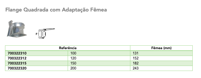 Flange Quadrada com Adaptação Fêmea