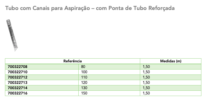 Tubo com Canais para Aspiração – com Ponta de Tubo Reforçada