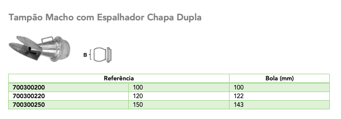 Ficha Técnica: Tampão Macho com Espalhador Chapa Dupla - Modelo LS (Italiano)
