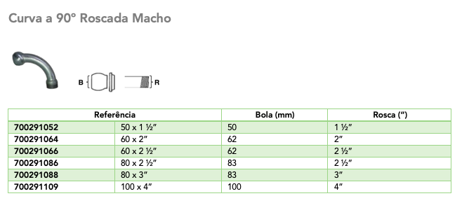 Ficha Técnica: Curva a 90º Roscada Macho - Modelo LS (Italiano)