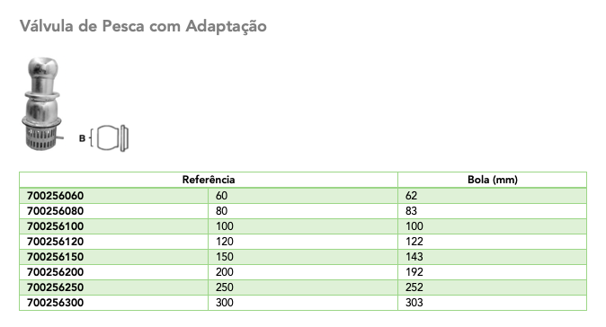 Ficha Técnica: Válvula de Pesca com Adaptação - Modelo LS (Italiano)