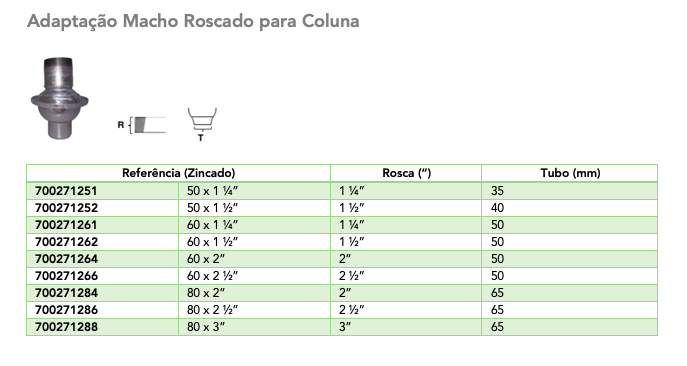 Adaptação Macho Roscado para Coluna