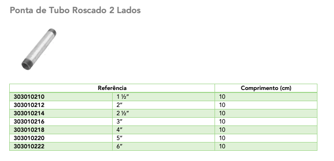 Ponta de Tubo Roscado 2 Lados