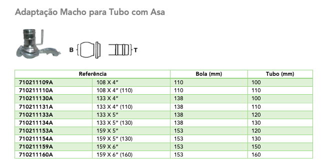 Ficha Técnica: Adaptação Macho para Tubo com Asa - Modelo Tipo Bauer