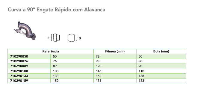 Ficha Técnica: Curva a 90º Engate Rápido com Alavanca - Modelo Tipo Bauer