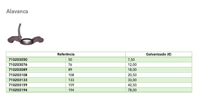 Ficha Técnica: Alavanca - Modelo Tipo Bauer