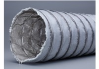 COMPOSIÇÃO: Tubo flexível com camada tripla: Interior em tecido de aço inoxidável de alta temperatura, camada central em tecido isolante de alta temperatura e camada externa em tecido revestido com PU de alta temperatura, reforçado por fio de aço inoxidável.
